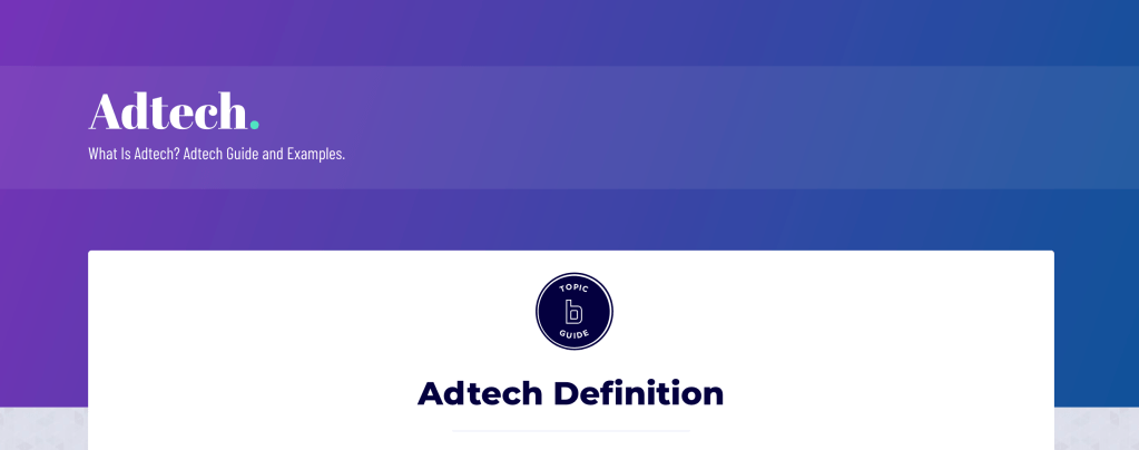 Because the editorial team wanted to split the company’s “Adtech + Martech” pillar page into two separate pages, I wrote fresh content for a new adtech pillar page. I provide a definition for adtech and an overview of its components, types, ecosystem, and market trends. (For SEO purposes, Built In doesn’t list the author byline on pillar pages.)