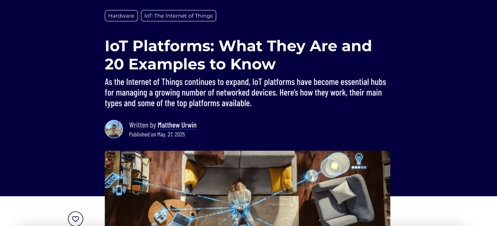 Lists often cover 20 companies or tools within the same industry. Before diving into a list of the top IoT platforms and their key characteristics, I quickly touch on what IoT platforms are and some of the main types available.
