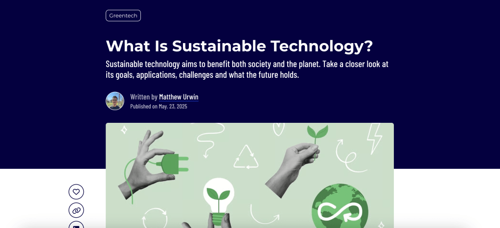 At Built In, quick-hitting articles don’t require any sources and typically fall within 800-1500 words in length. For this quick-hitter, I provide an overview of sustainable technology, including its benefits, examples, challenges, and future outlook.