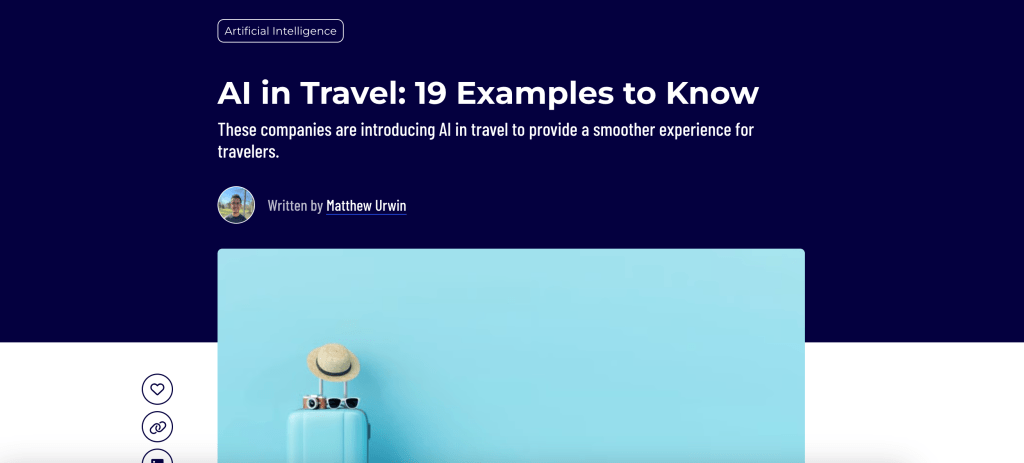 I rewrote from scratch a four-year-old listicle on AI in the travel industry that wasn’t getting much traffic. I crafted a crisper intro reviewing the topic and researched companies to round out a list of 10 businesses employing AI in travel. (More examples have since been added as part of additional updates.)